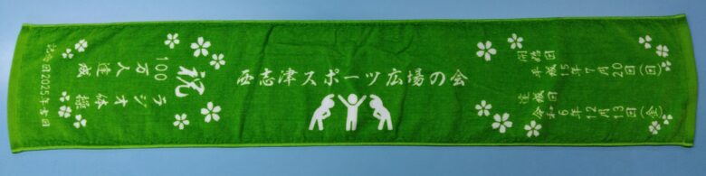 西志津スポーツ広場の会様のオリジナルマフラータオルの製作事例になります。