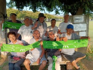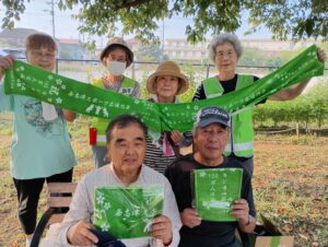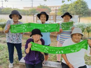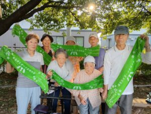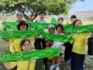 制作したオリジナルフェイスタオルでの集合写真