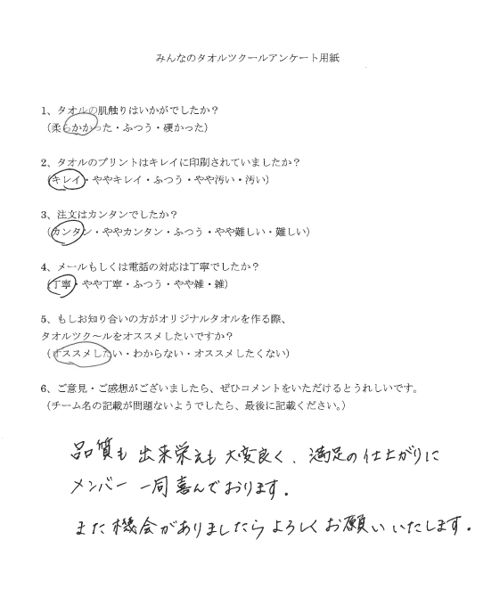 以下、タオルツクールのアンケート用紙になります。